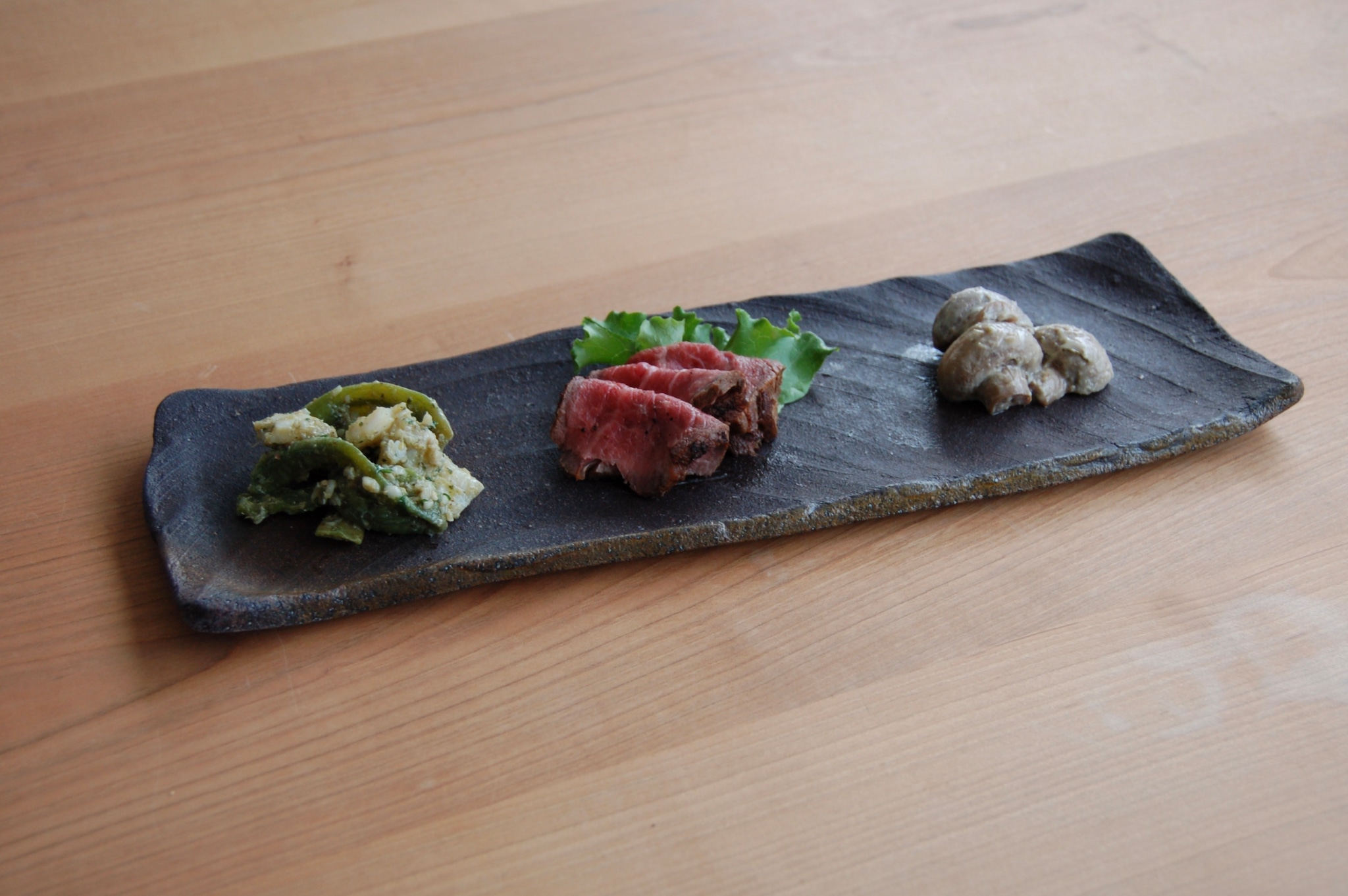 無釉の土の表情は懐が深く、格式高くも、モダンにも使えますが、飾らないお惣菜をどんどん盛り付けて育ててください。