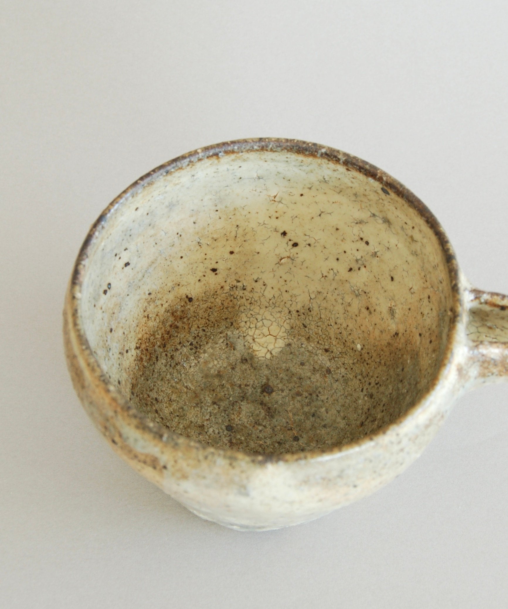 この片口も、白、ベージュ、クリーム、茶、グレーと、たくさんの色が出ています。見ていて飽きず、土と釉薬と火が生み出す奥深い表情はどれも美しく、見惚れてしまいます。