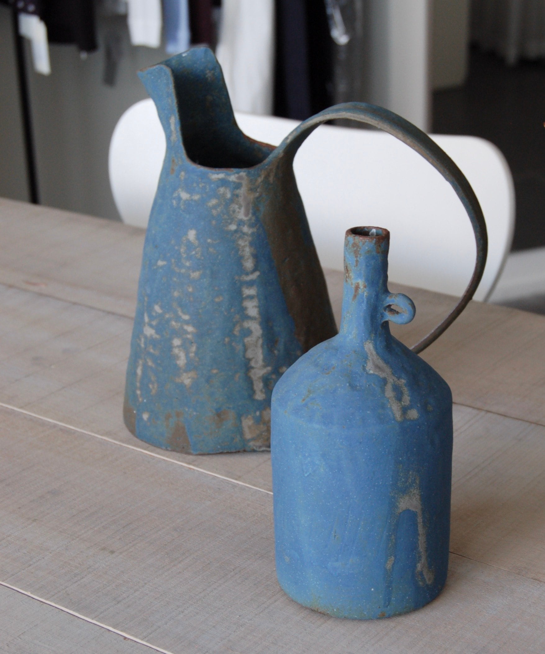 ピッチャーは暗めのブルーです。手前のボトルは明るめのブルー。