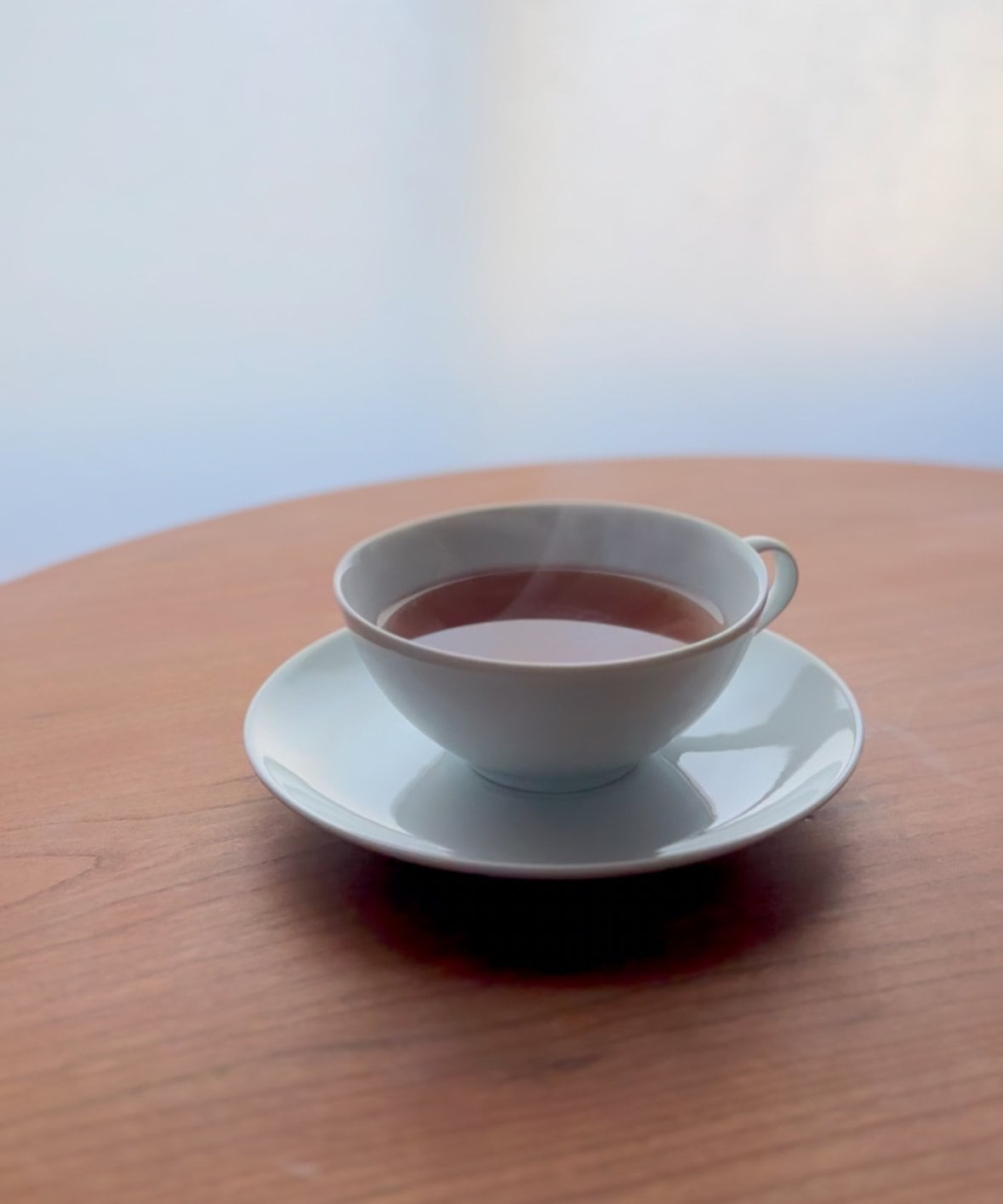 デザインは、コーヒーが飲めない灰月オーナーが、紅茶の色が綺麗に見える浅型カップで、香りたつ形にと、自らデザインしました。