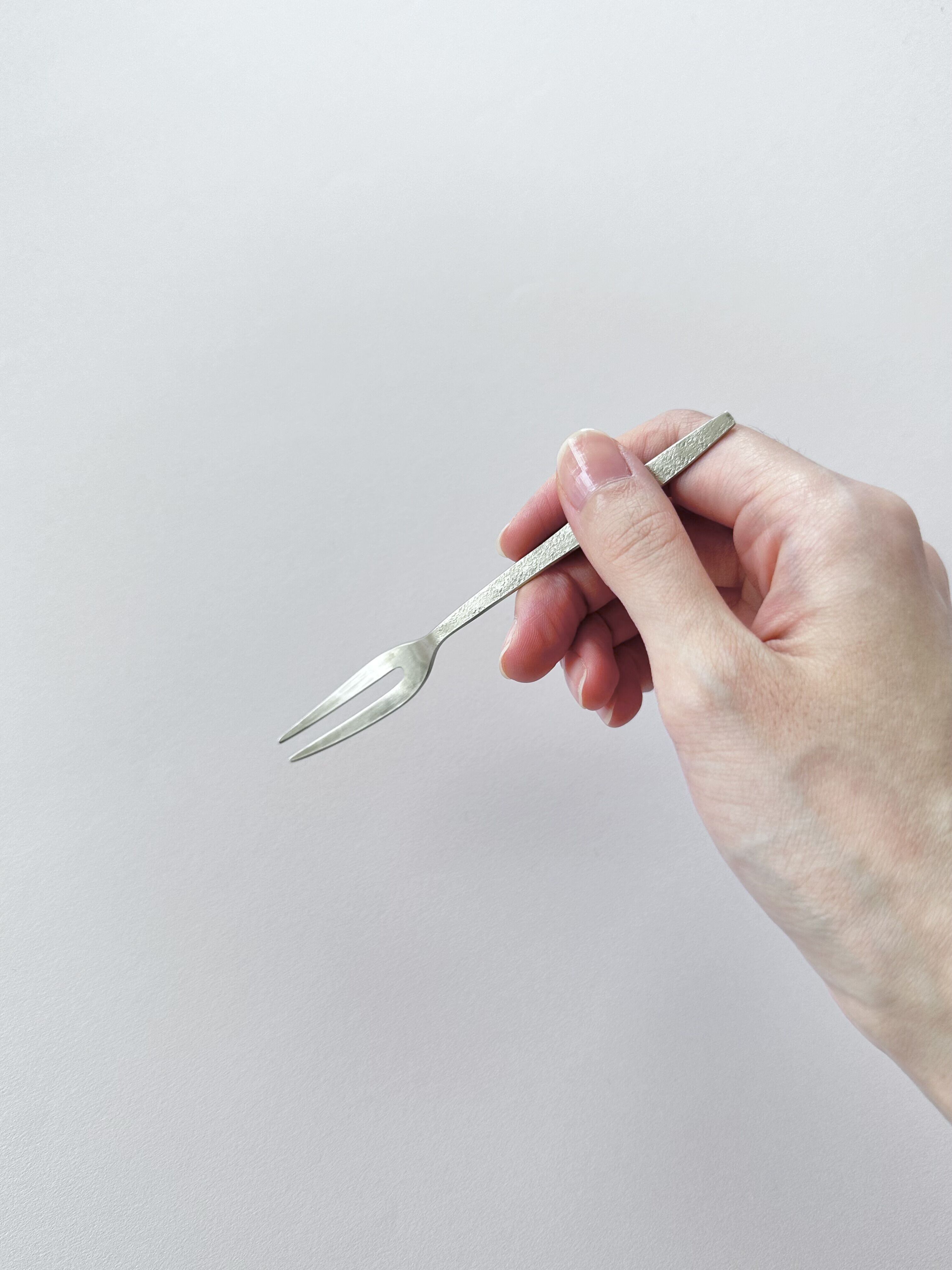 このフォークで刺して口に運ぶ…とても優雅な気持ちになりませんか?