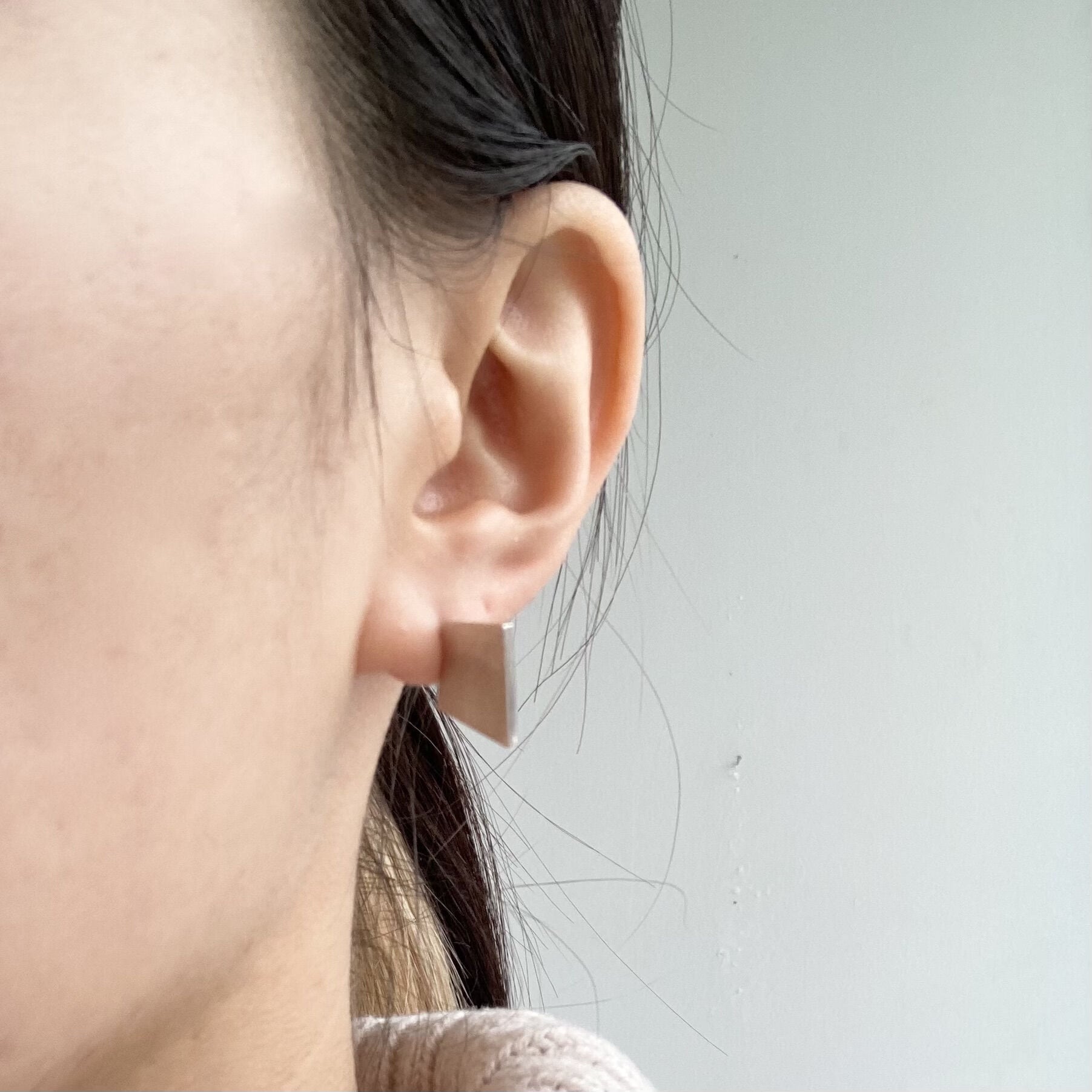 ポストが側面についていることで、耳につけた時に立体的になる、というデザインになっています。