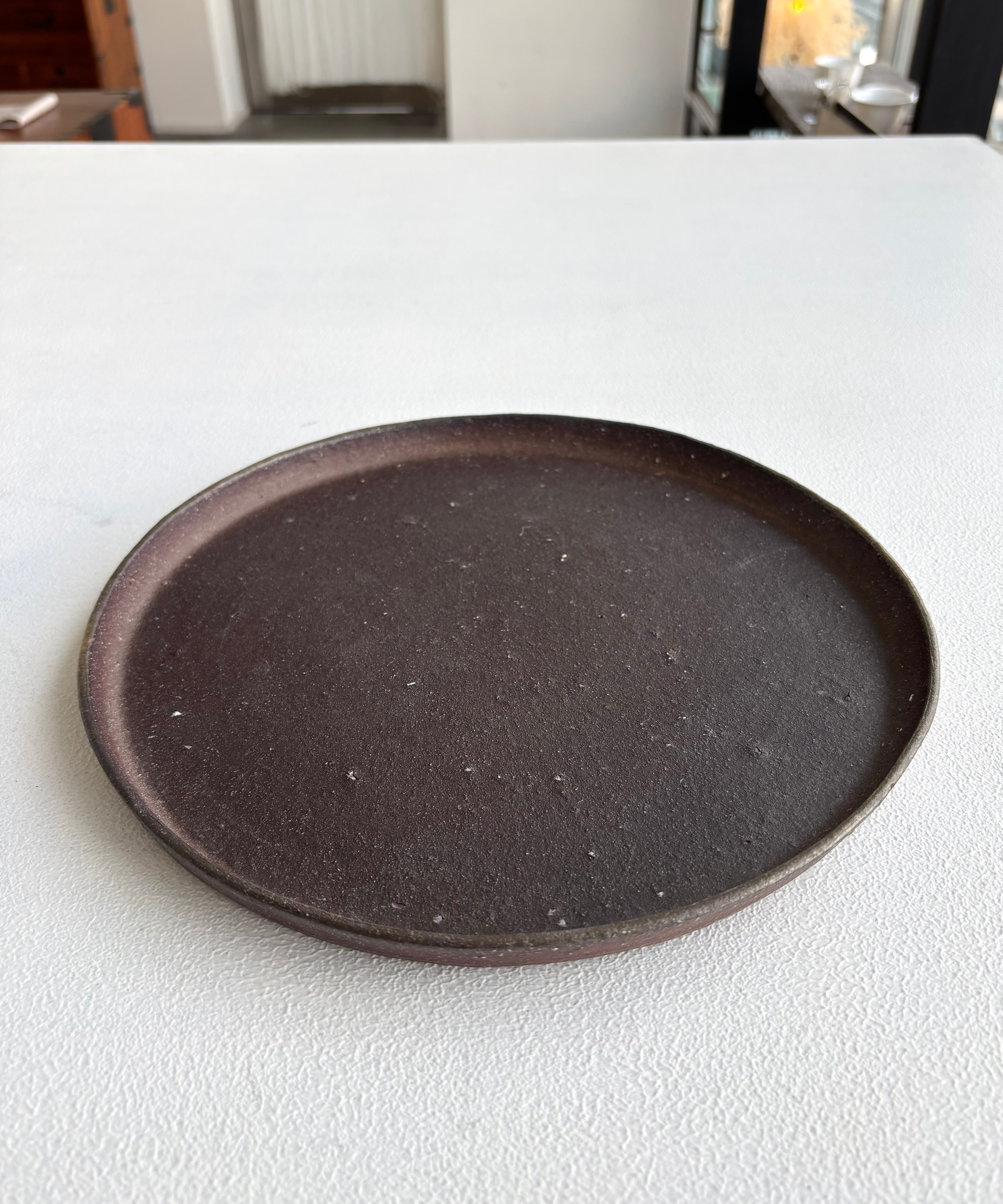 長野県上田市染屋の土を使い、10日間穴窯で薪のみで焼き締めた丸皿。