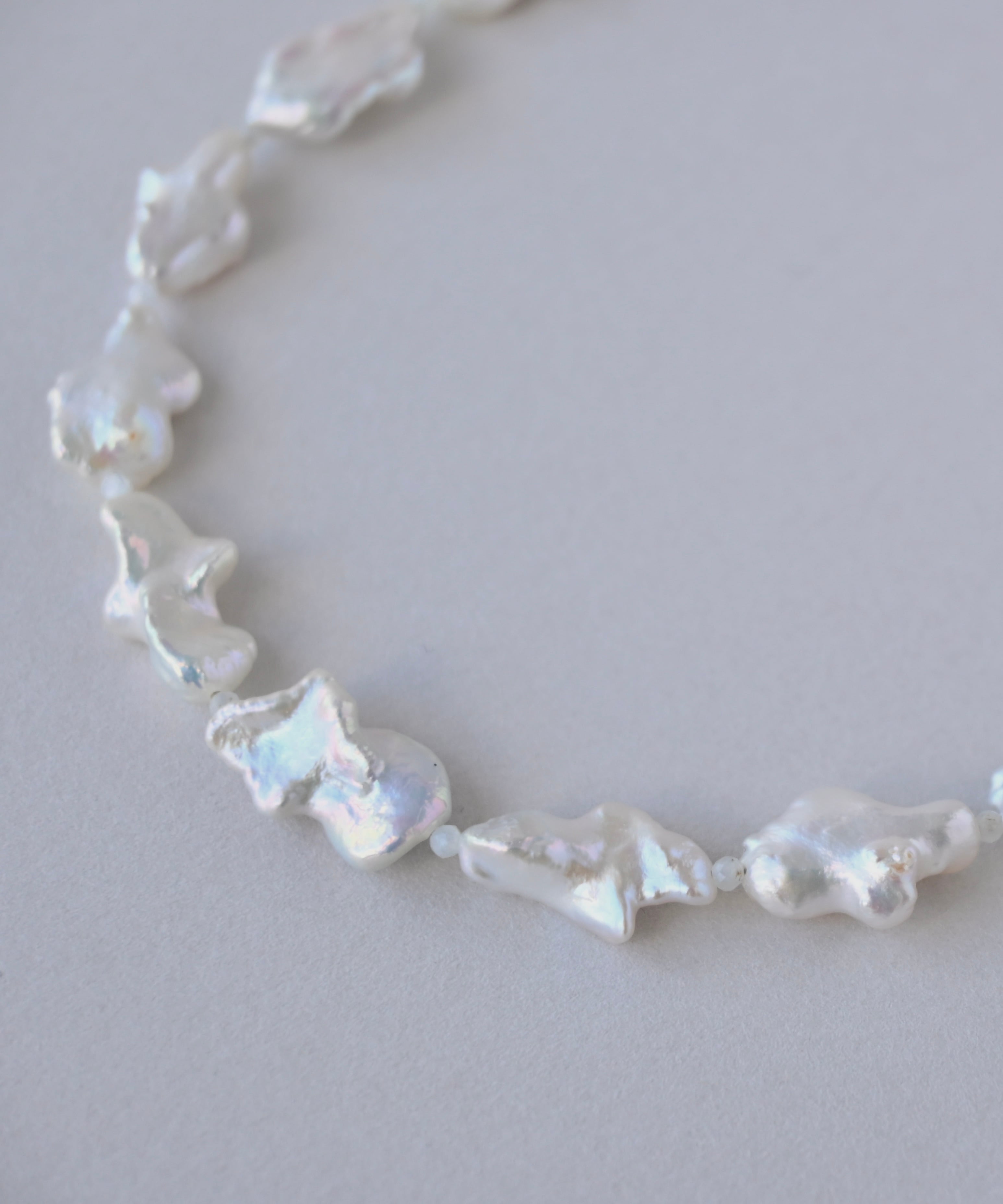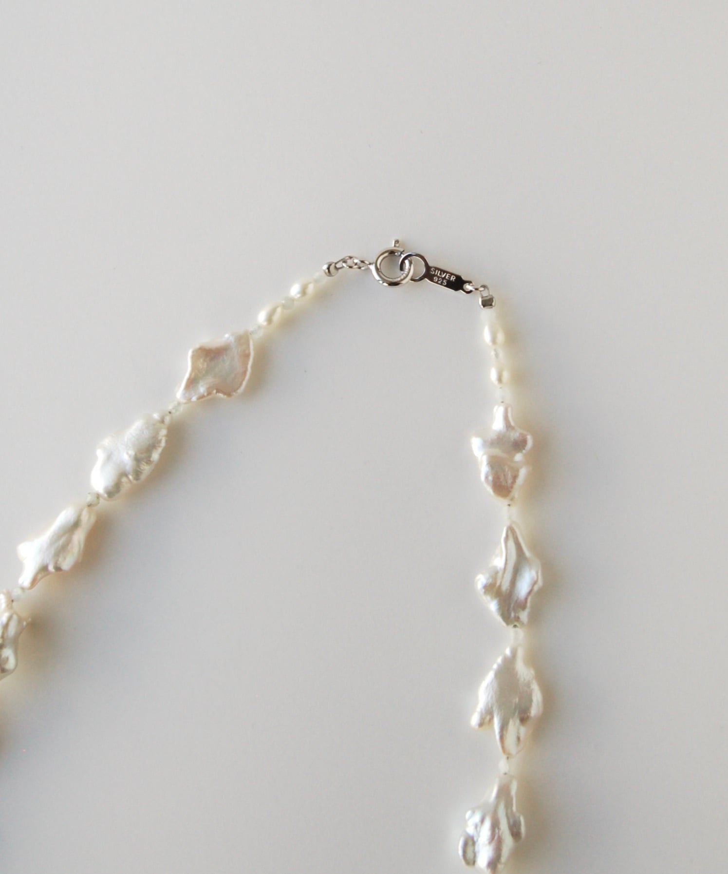自然にできたさまざまな形が、枇杷の実に似ていることから名付けられた美しいビワパールのネックレス。
