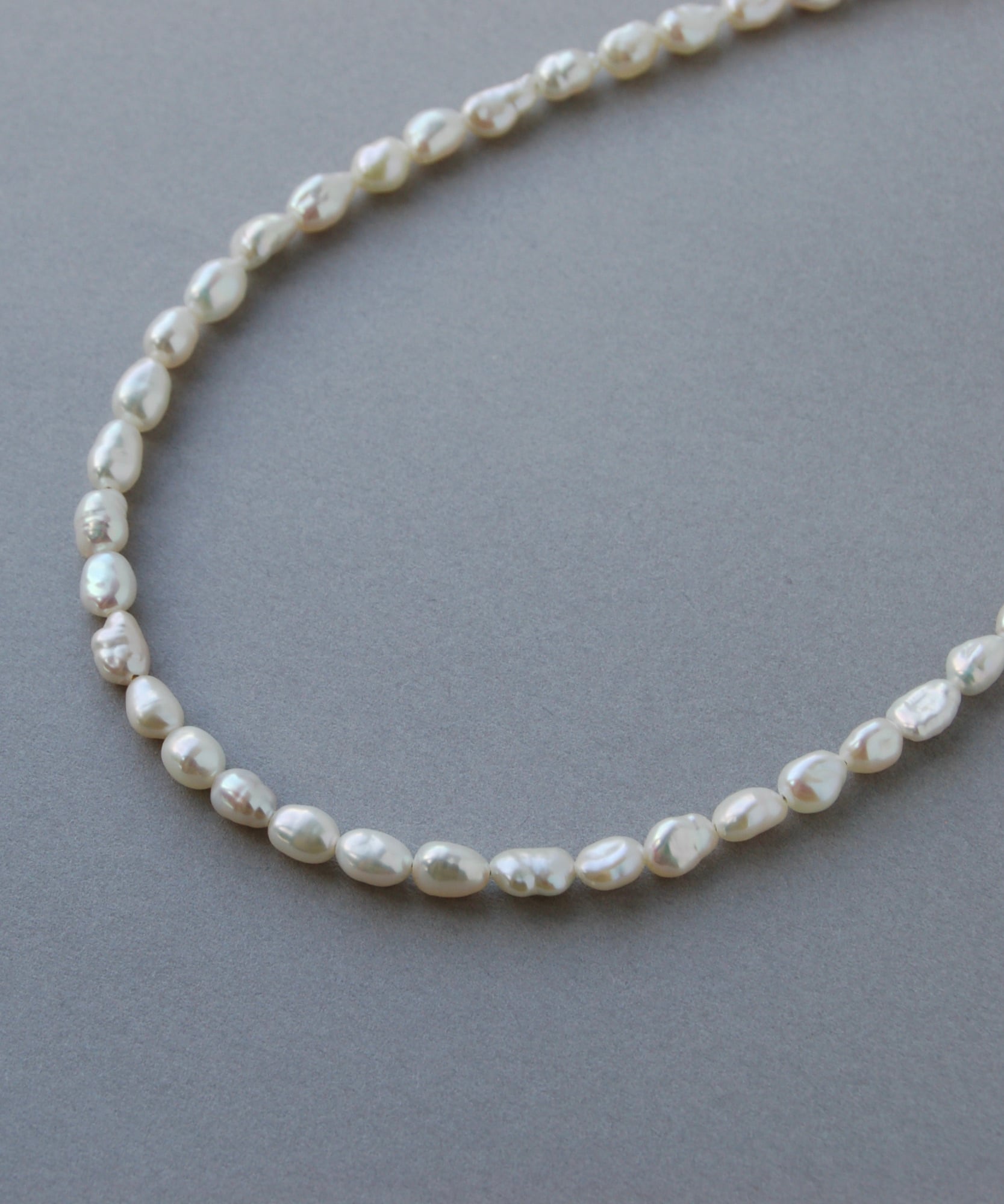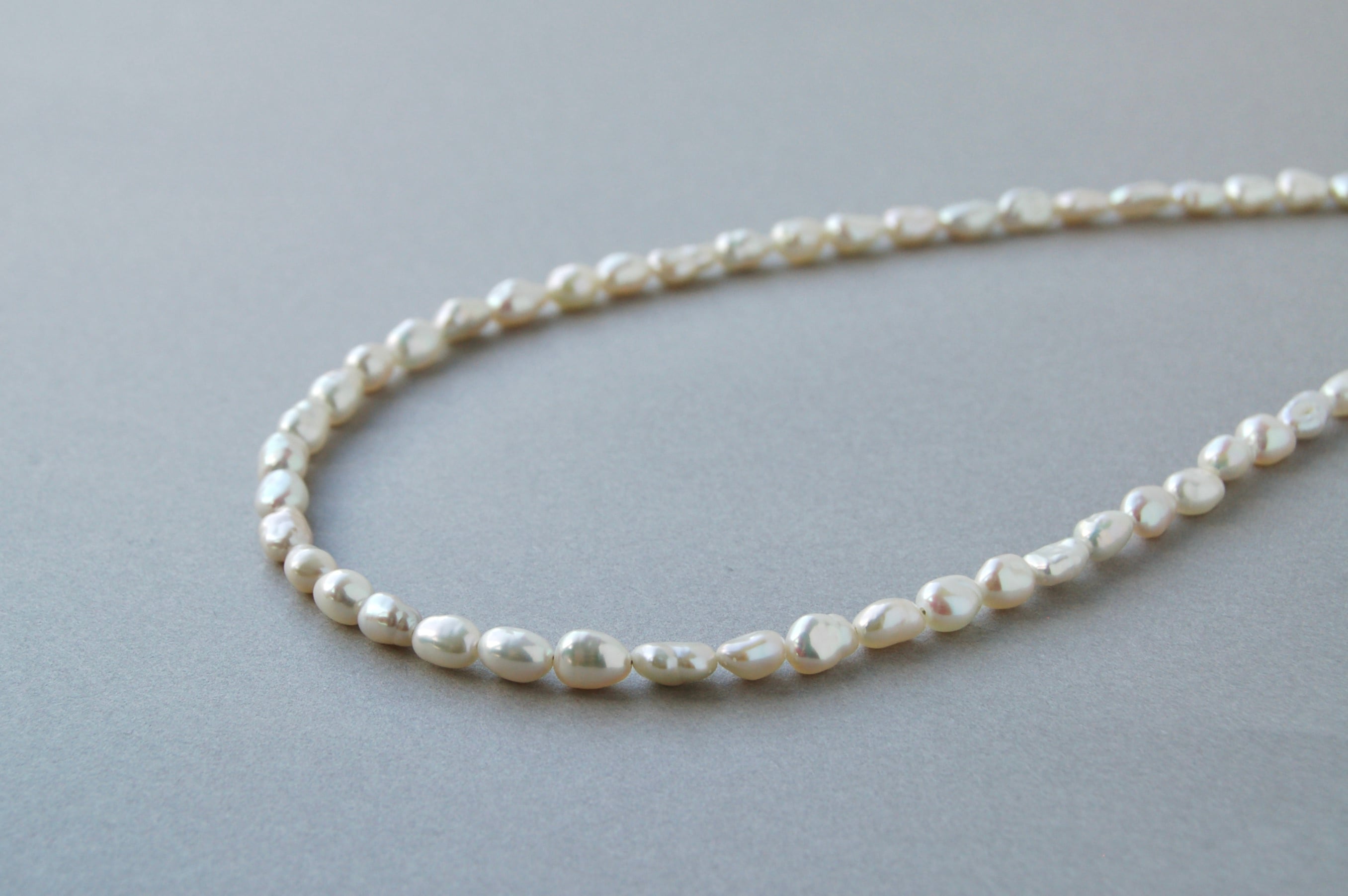 一つずつ形が違う、優しい印象のパールネックレスです。