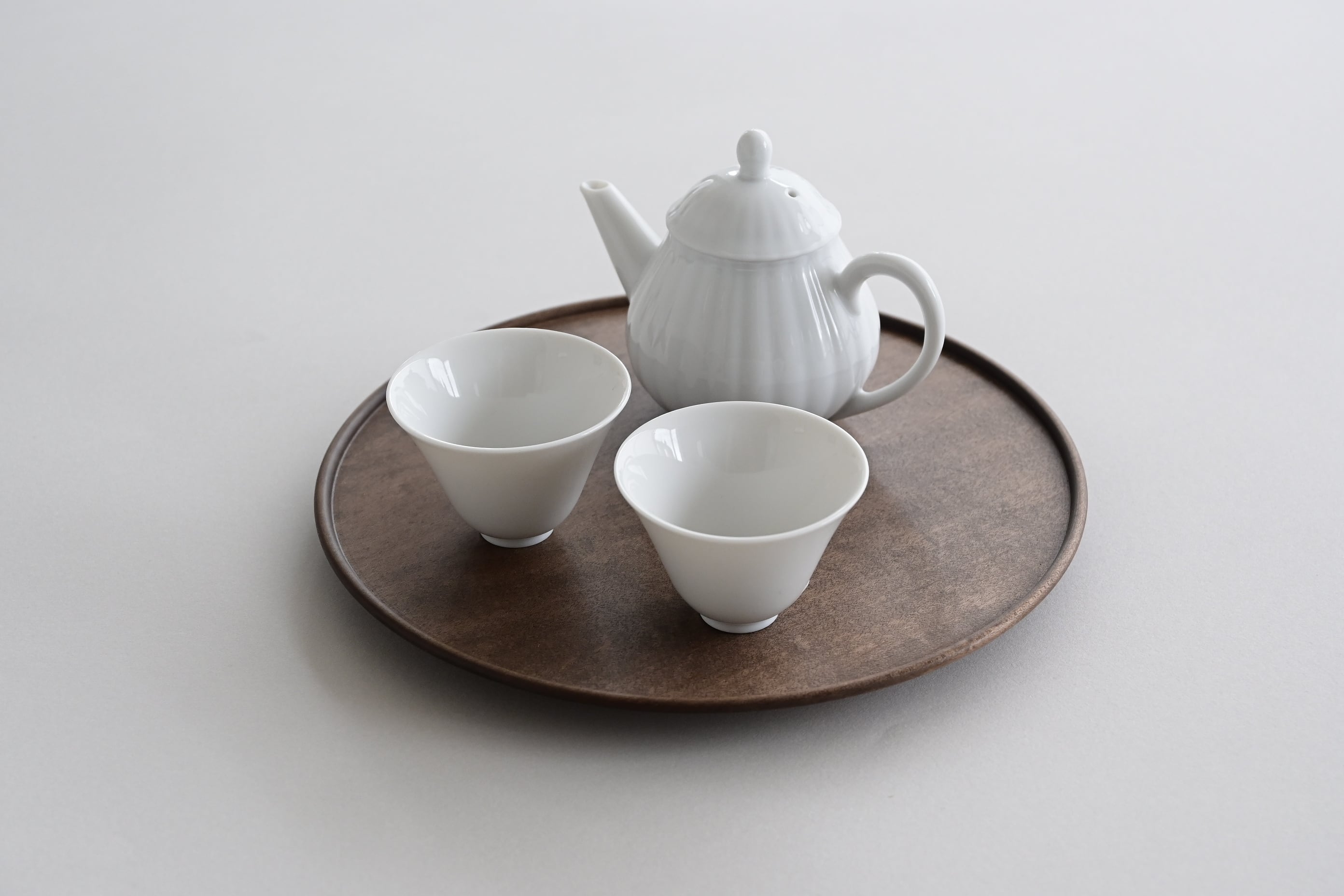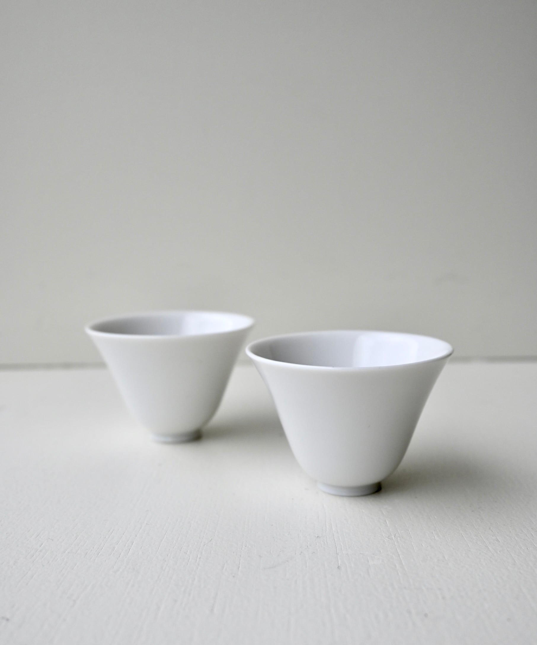 真っ白な美しい白磁の茶杯。中国茶用として香りを楽しみ、美味しいお茶をいただける茶杯です。滑らかな口当たりが一層美味しさを引き立てます。 村上さの「輪花雫茶壷」と共にお茶の時間をお楽しみ下さい。 [サイズ] 高さ_約4.2cm、口径_約6cm [素材] 白磁 [村上雄一] 1982 東京に生まれる 2001 - 沖縄県読谷村の山田真萬工房にて5年勤務 2009 多治見市陶磁器意匠研究所修了 2011 岐阜県土岐市に工房を構える